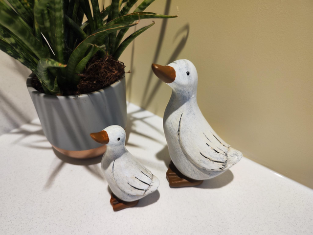Made from resin these beautiful duck / Goose ornaments will brighten up any room